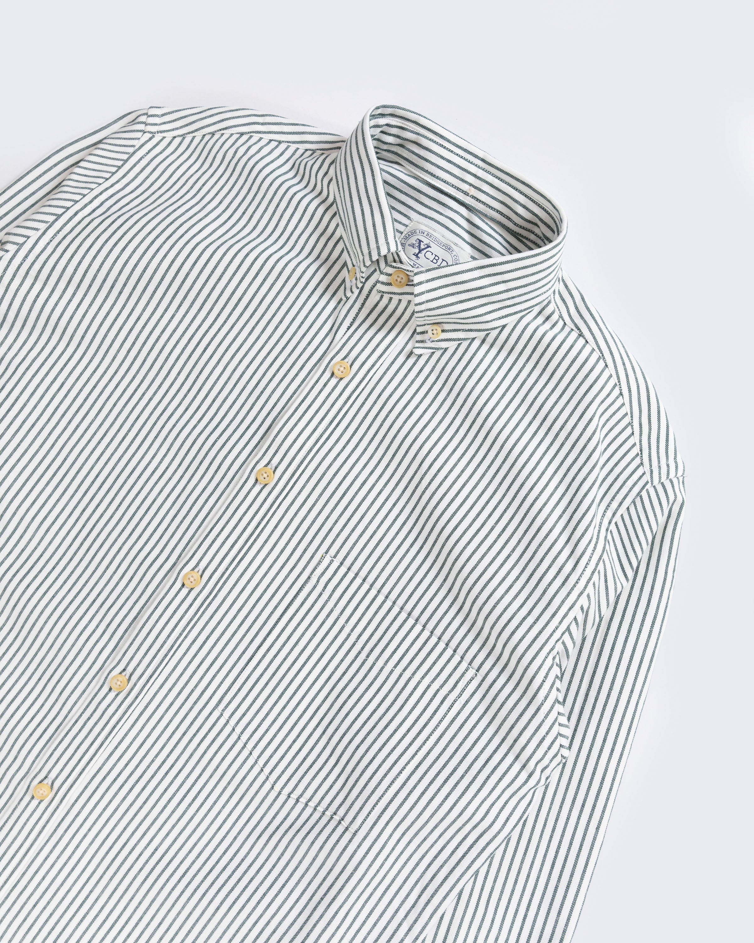 The fit is relaxed and slightly long to accommodate a tucked in look. The collar is full to allow a nice roll. Triangular pocket detail and third back collar button, as well as ascolite neck wrapped button shanks on the incredibly thick and luxurious "patina" buttons. Our favorite detail is the old world style side seam gusset. That took us a bit to perfect and we think the look of the deep rounded hem with the functional gusset at the top is as "Ivy" as the school we named this for.Ā